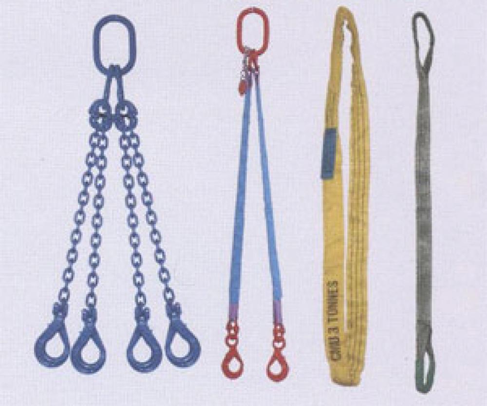- Des élingues de levage composées de cordages, de chaînes, de câbles. Les élingues de levage se positionnent entre la charge et la machine de levage. Les extrémités de l'élingue sont reliées à l'appareil de levage.